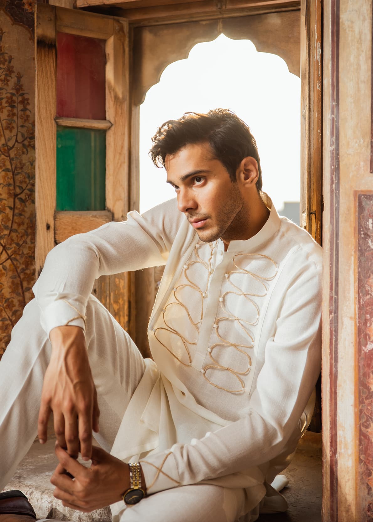 Poly-cotton blend Kamiz & Trouser with jute strings detailing